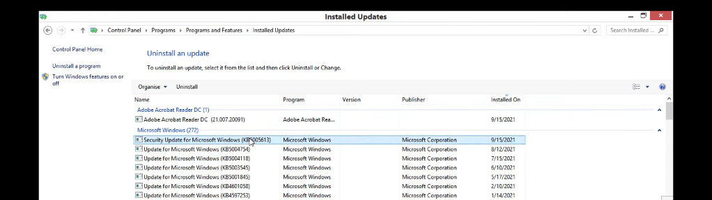 Açılan kısımda aşağıdaki gibi KB5005613 isimli güvenlik güncelleştirme paketini kaldırıyoruz.